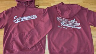 左側に愛宕神社様の社紋「左三つ巴」を赤で手書きしました。