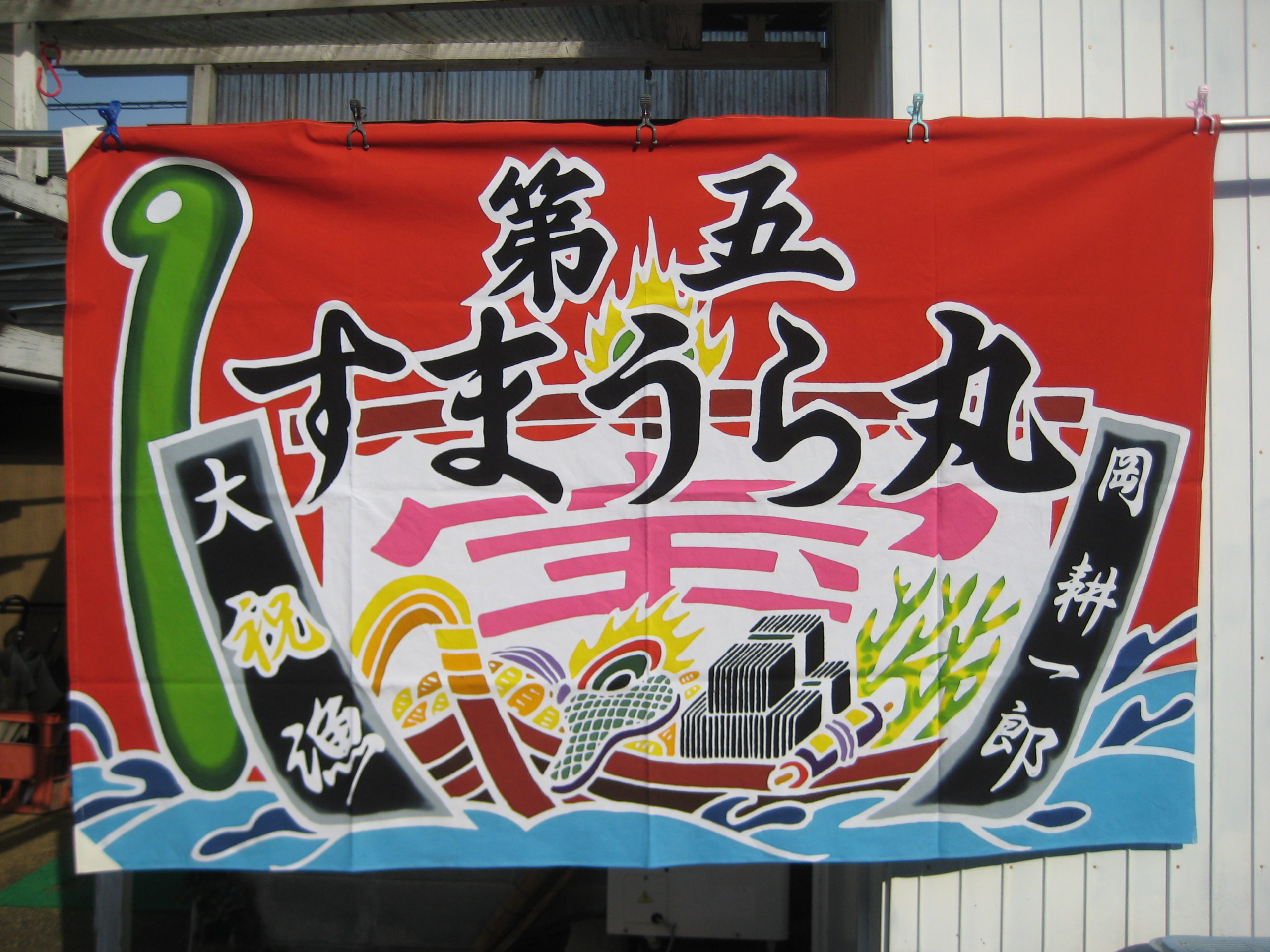 淡路 大漁旗のご依頼いただきました。 未分類 2023.02.07 第五すまうら丸様の大漁旗作成しました。 海苔の船なので、大宝船の宝の中に海苔の束を積みにしました。 さのや染物店オリジナルの大漁旗のデザインです。 くれぐれも同業者様はデザインをパクらないように宜しくお願い致します。