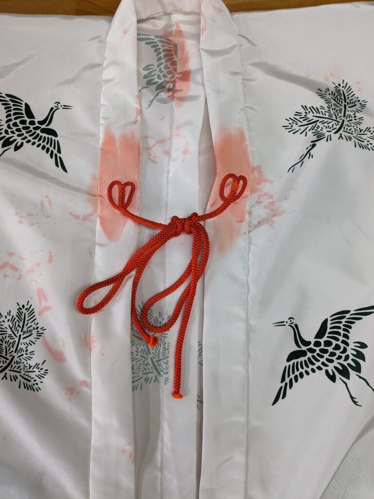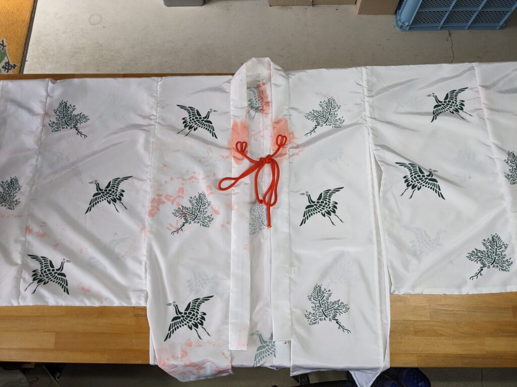 淡路 着物のクリーニングのご依頼いただきました。 未分類 2024.07.04 巫女の衣装のクリーニングしました。 ご自身で洗われて、下のように色が、完全に、うつってしまいました。 背中も全体的に すぐにしみ抜きしました。 ここまで落ちました。 特に酷かった胸、衿の一番目立つ所。 3回しみ抜き。 綺麗になりました。 今回はお客様が直ぐに持って来て頂いたのが一番良かったと思います。大変、喜んで頂きました。 毎度有難うございます。