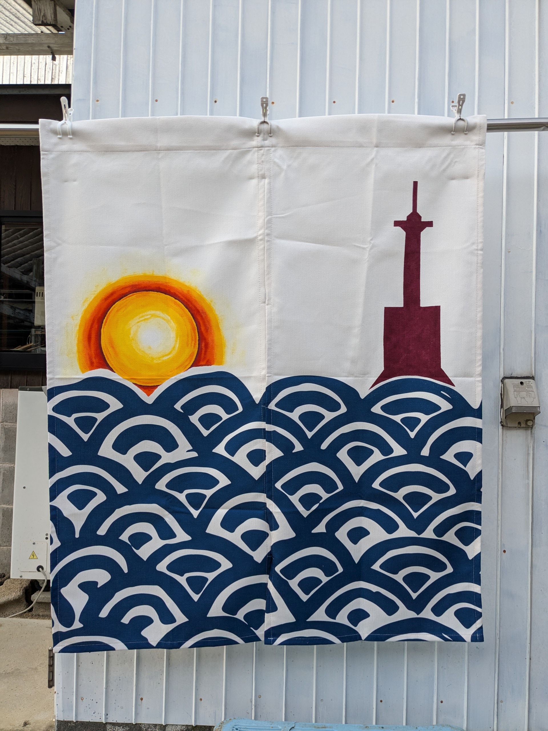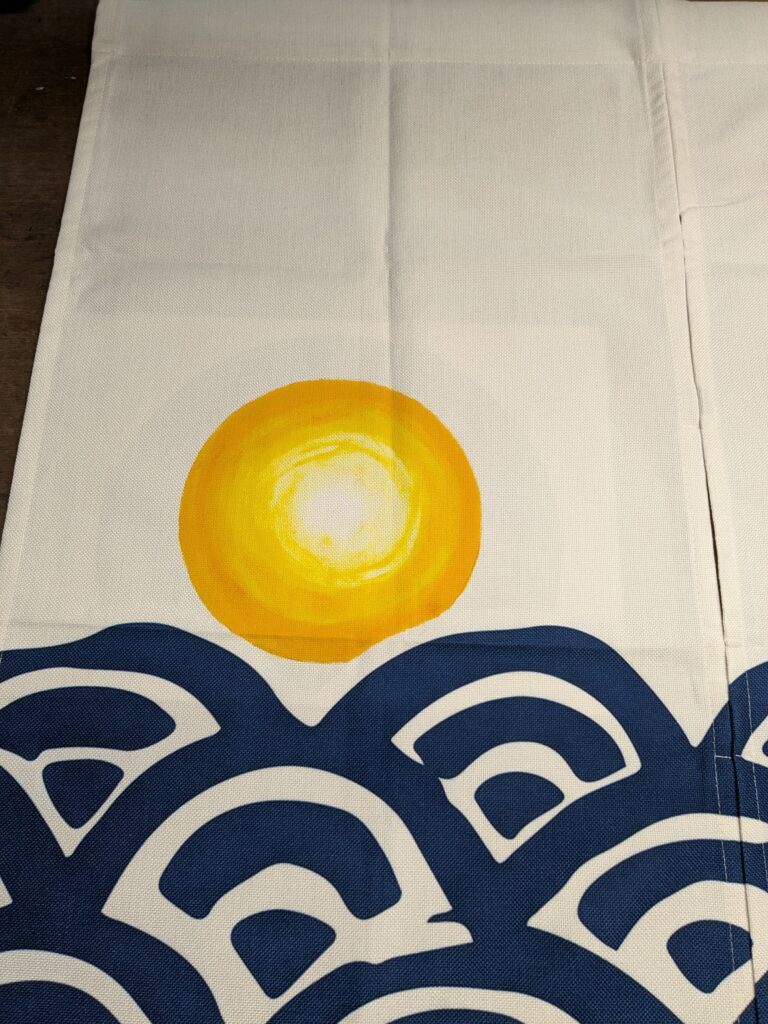 awaji のれんのご依頼いただきました。 未分類 2024.07.11 淡路市尾崎の灯台近くの「わとわ」様の、のれん作成しました。 元々あった暖簾です。 手書きで夕日を手描きしました。 プラス灯台も。 短い納期でしたが、間に合わせました。 7月13日にオープンとの事です。 大変、喜んで頂きました。 毎度有難うございます。