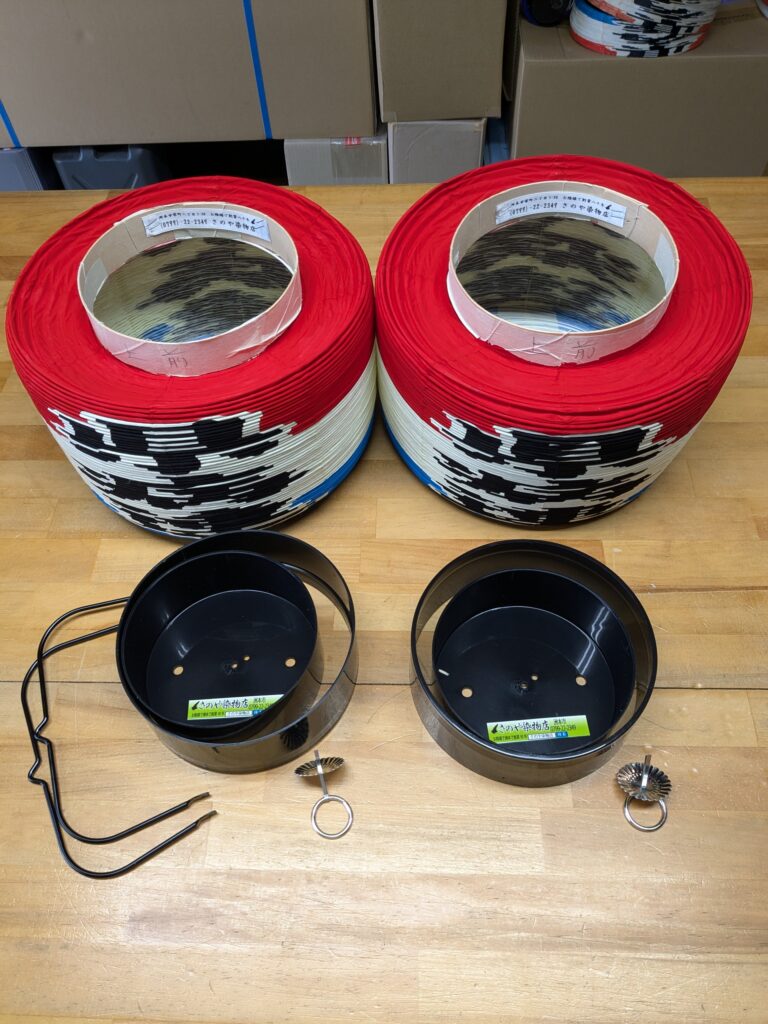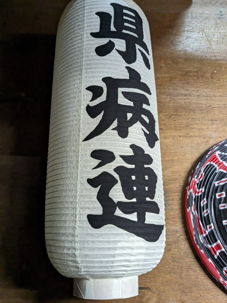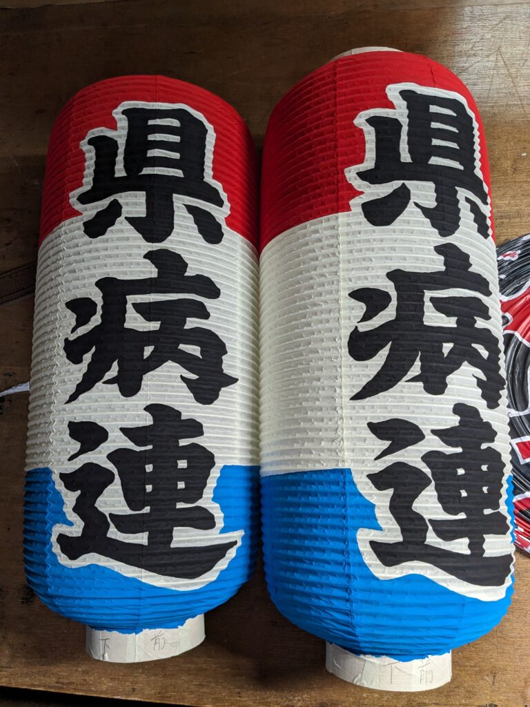 あわじ島 提灯のご依頼いただきました。 未分類 2024.07.27 洲本市の淡路医療センター様の県病連の竹の先に吊るす高張ちょうちん作成しました。 古い見本のビニール提灯です。 今回は和紙で作成させて頂きました。 和紙の方が色が良くのるので、仕上がりが綺麗です。 上下に赤と新橋で。 皮と太つるとチラシ金で仕立てて仕上がりです。 毎度有難うございます。