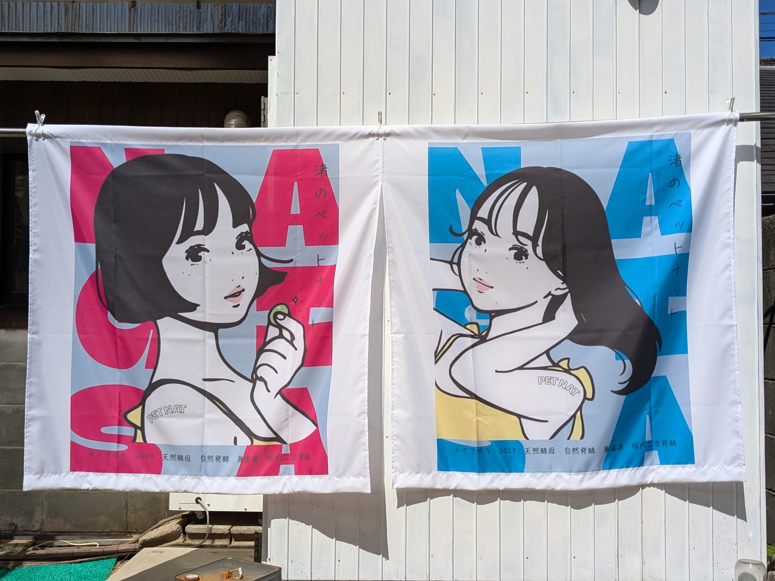 淡路島 のれんのご依頼いただきました。 未分類 2024.09.21 洲本市由良にオープンする「海辺のWINE SHOPゆらら」様の、のれん作成しました。 化繊の厚手のポリエステル生地に大きく「渚のペットナット」のデザインロゴを入れました。 風が強い海辺なので、巻上がりにくい、裾に芯入り四方三巻補強仕立てです。 納期短かったですが、間に合わせました。 竹もご用意させて頂きました。 大変、喜んで頂きました。 毎度有難うございます🙇