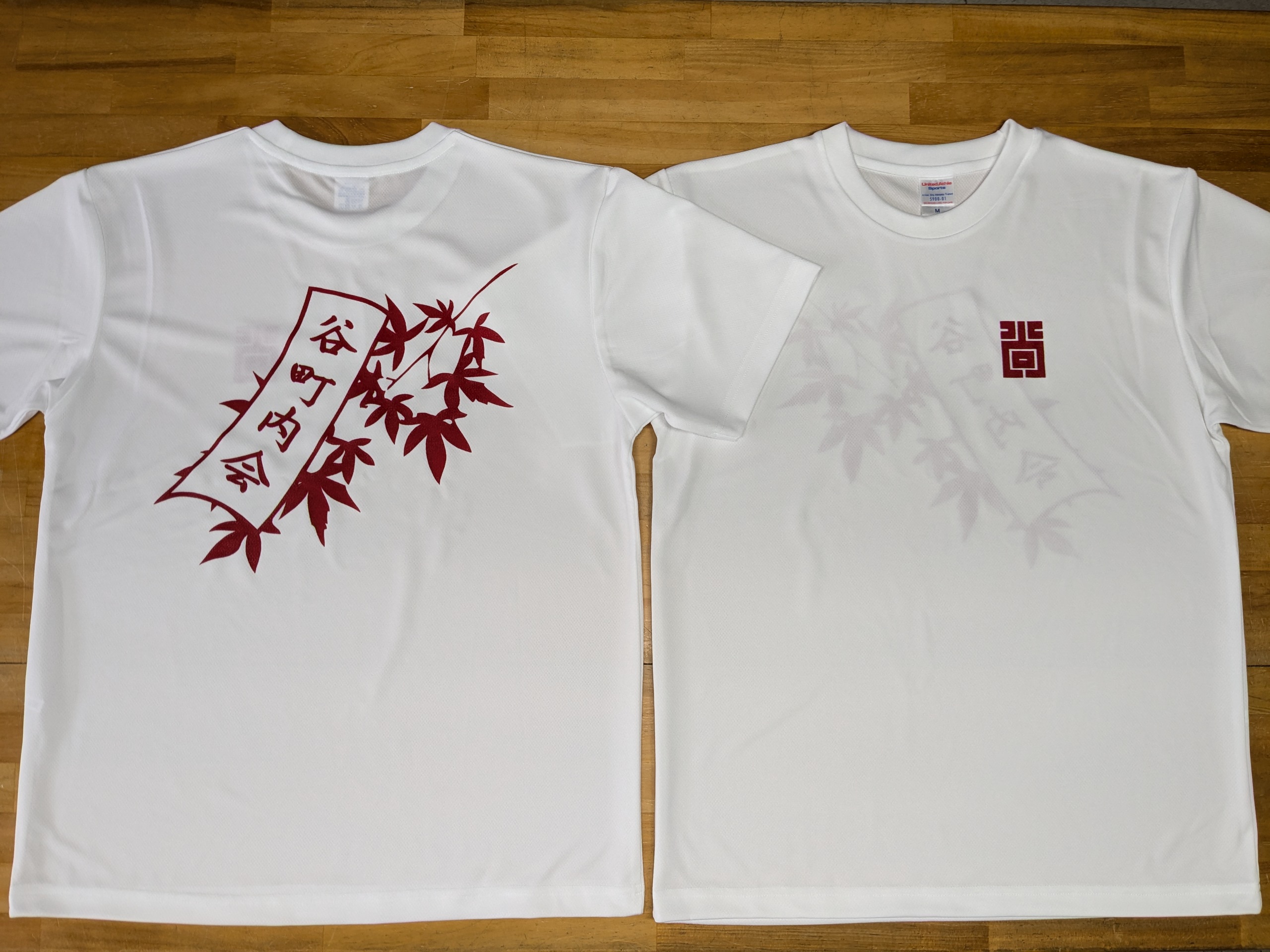 淡路島 Tシャツプリントのご依頼いただきました。 未分類 2024.10.10 淡路市谷町内会様の祭り用のtシャツ作成させて頂きました。 胸に「谷」ロゴ 背中に「紅葉短冊に谷町内会」 乾きやすいメッシュのドライTシャツで作成しました。 大変、喜んで頂きました。 谷町内会様は、これまで、はんてん、提灯、などなど様々作成させて頂いております。 毎度有難うございます🙇