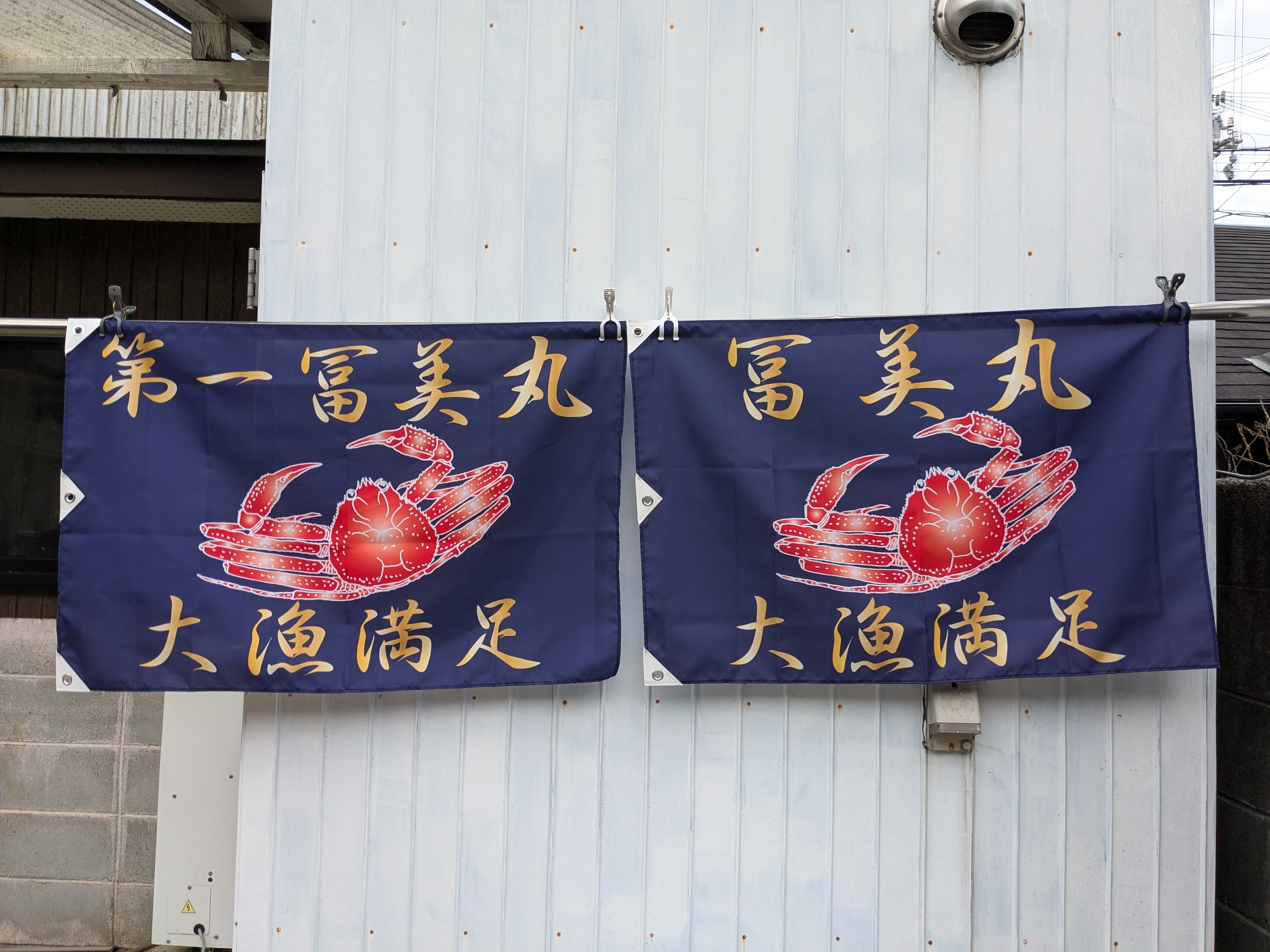 大漁旗のご依頼いただきました。 未分類 2024.11.15 2024.11.01 兵庫県美方郡新温泉町浜坂の冨美丸漁業様の大漁旗作成しました。 船に揚げる小さめの旗です。 シンプルに真ん中に松葉ガニに金色で「船名」と「大漁満足」です。 風に強い四方三巻補強仕立てです。 何と、先日、浜坂の一番ガニを冨美丸漁業様の、第一冨美丸が水揚げされました。 誠におめでたい事で、我がことのように喜びました。 大さん、おめでとう! 毎度有難うございます。