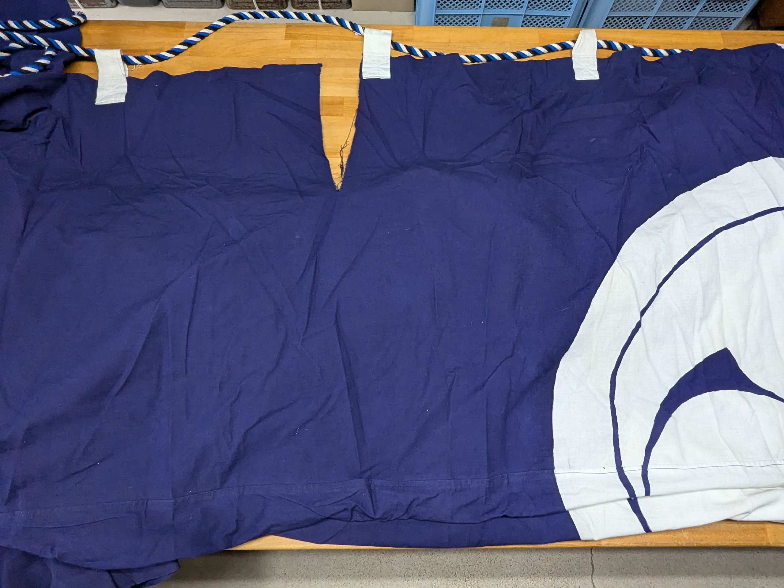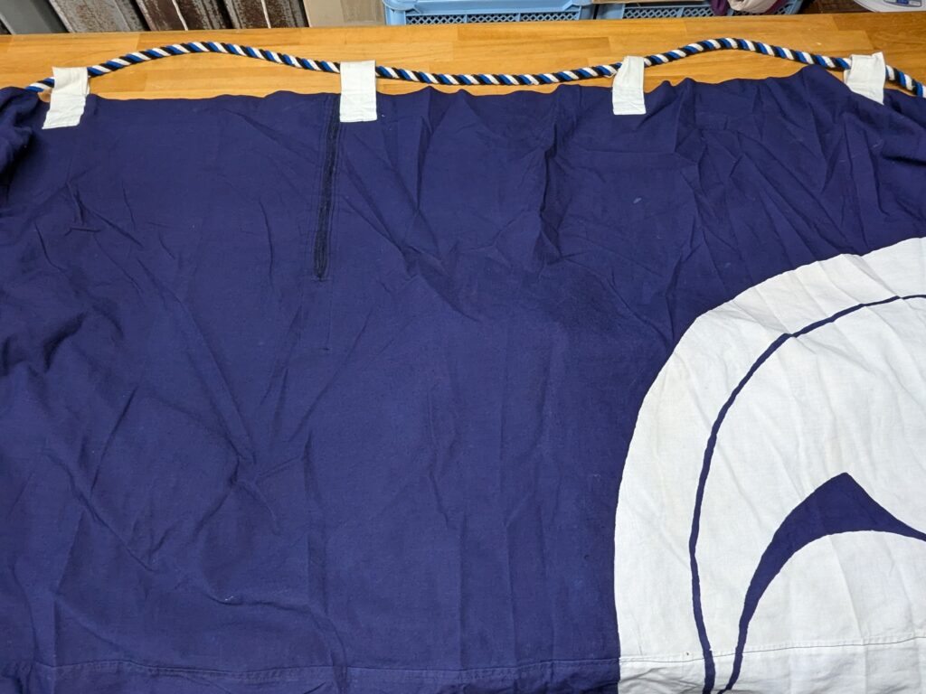 淡路 幕の修理のご依頼いただきました。 未分類 2024.11.26 南あわじ市福良八幡神社様の住吉神社様の拝殿幕を修理しました。 ほつれは、インターロックで直しております。 同じ紺地の生地を裏当てて。 裂けて破れてしまった所を修理しました。 ほぼ分からないように仕上げました。 大変、喜んで頂きました。 毎度有難うございます。