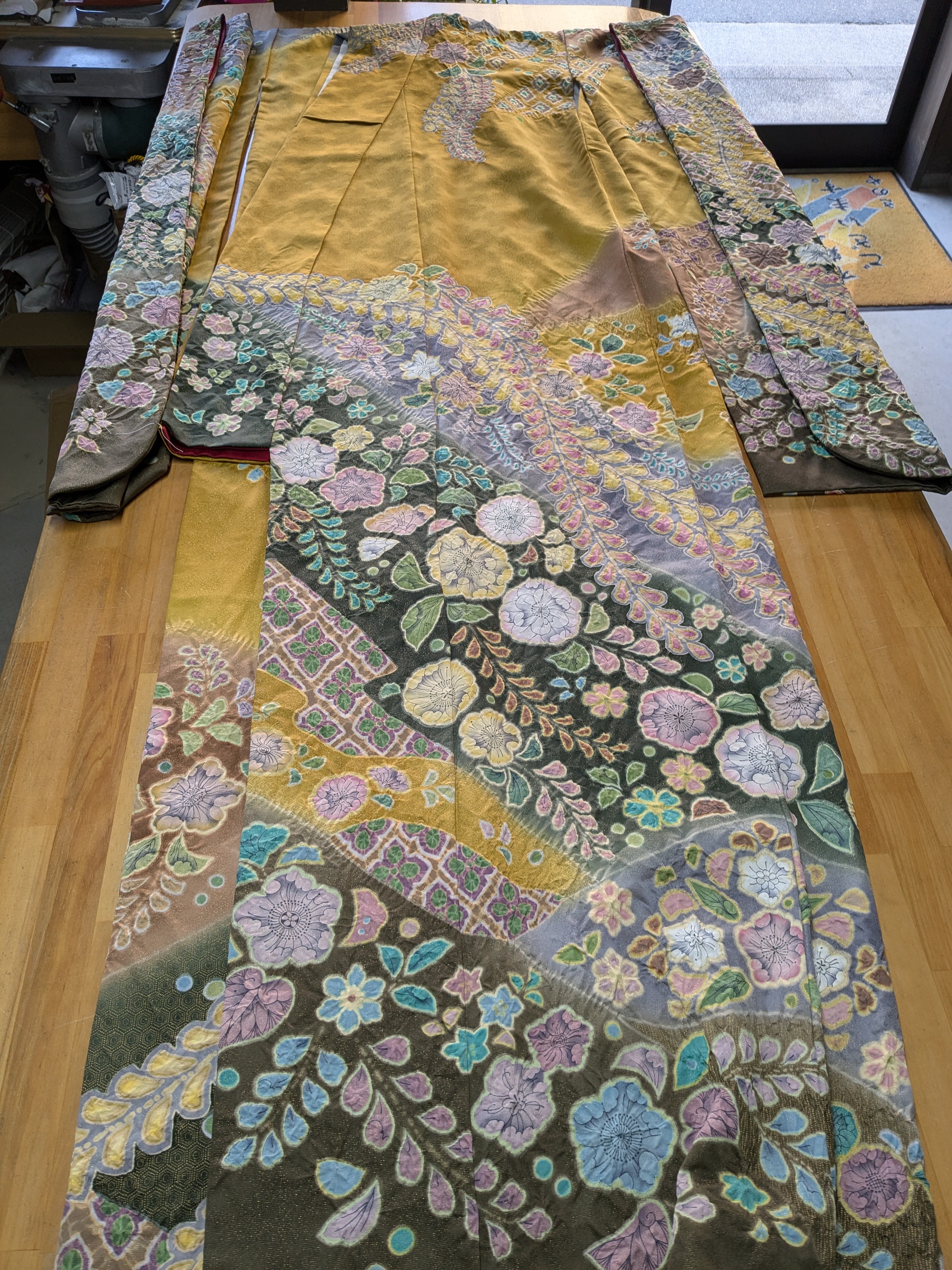 淡路 きものクリーニングのご依頼いただきました。 未分類 2024.11.30 洲本市美容室の常連様の先生のご依頼の着物、辻が花の振袖のクリーニングしました。 全て洗うほど汚れが出ていなかったので、衿ふきとしみ抜きとゆのし仕上げしました。 毎度有難うございます。