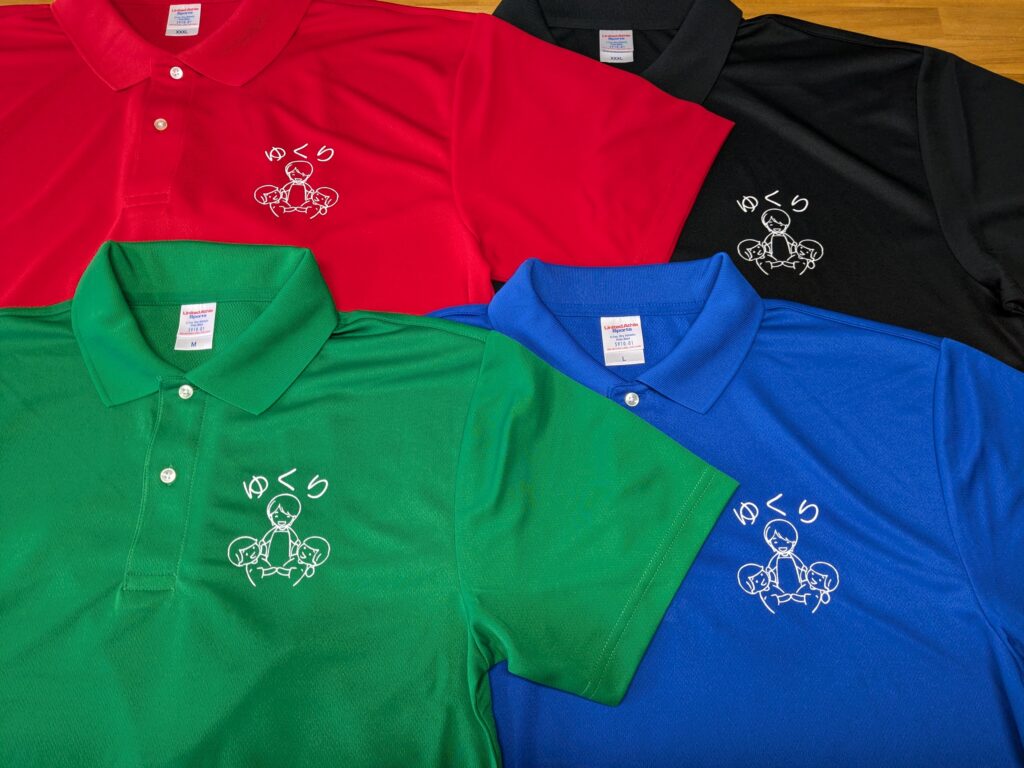 あわじ島 スエットのプリントのご依頼いただきました。 未分類 2024.12.19 洲本市の児童発達支援・放課後等デイサービス ゆくり様のスタッフスエット、トレーナー、ポロシャツ作成しました。 スエット、トレーナー、ドライポロシャツに白プリントでシャツの色は様々です。 毎度有難うございます。