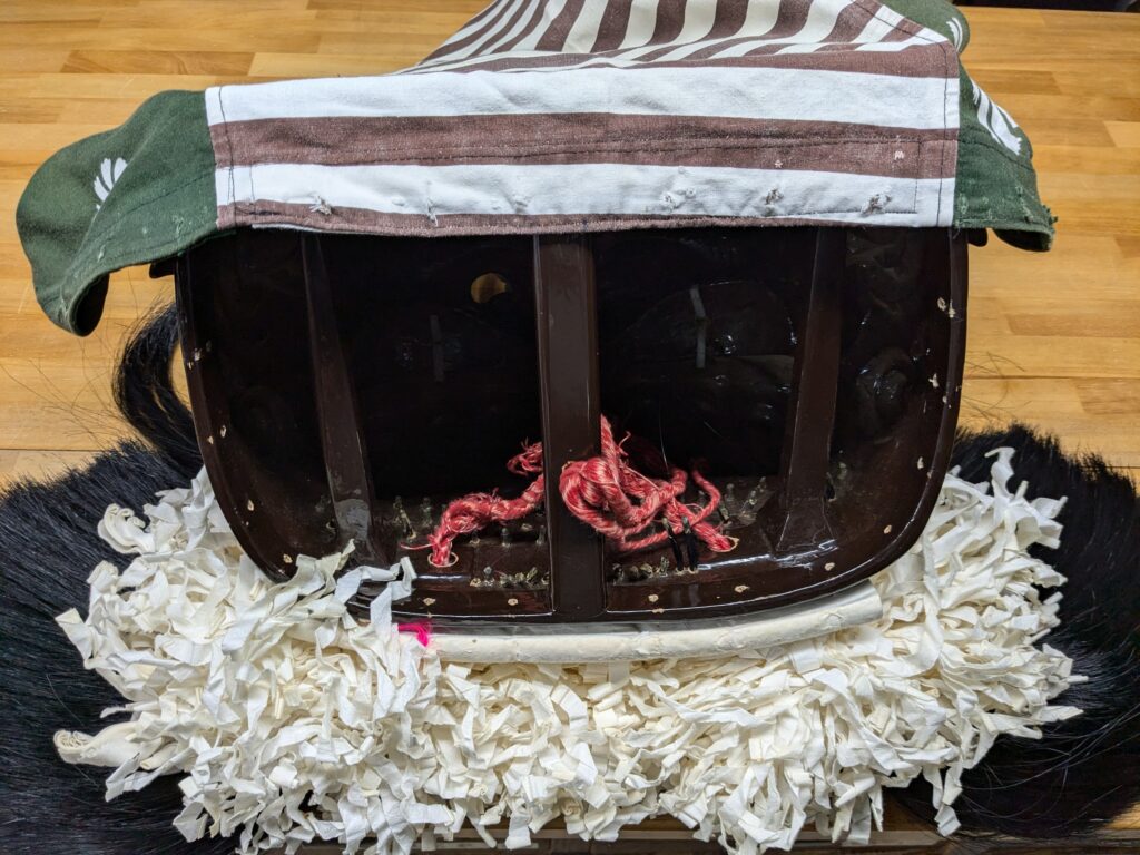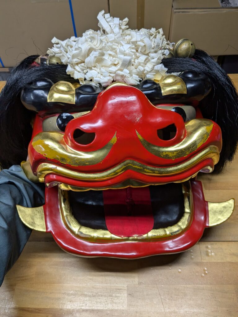 淡路島 獅子舞油単のクリーニングのご依頼いただきました。 未分類 2025.02.20 淡路市山田子供会様の獅子舞衣裳のクリーニングしました。 獅子の頭から、ゆたんを外します。 全ていったん、洗います。 仕上げた後に、再び、前に付けて合った通りにゆたんを付け直します。 取り外し、取付直しと手間が掛かりますが、一番綺麗に仕上がります。 大変、喜んで頂きました。 毎度有難うございます。