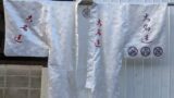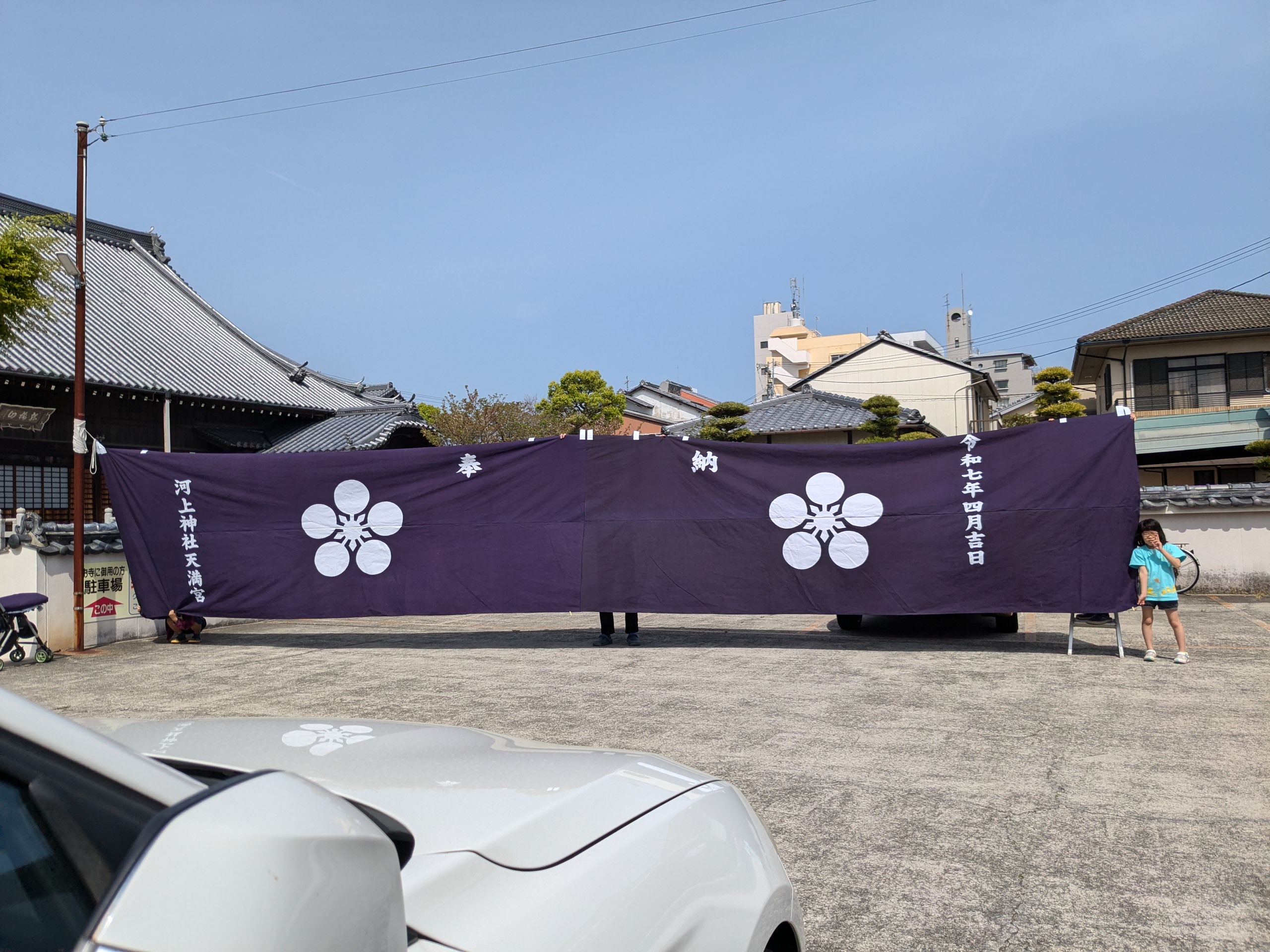 淡路 幕のご依頼いただきました。 未分類 2025.05.01 洲本市五色町鮎原の河上神社様の本殿前の神社幕作成させて頂きました。 約10年前に染めて、10年間出しっぱなし雨ざらし日ざらしで今回新調になりました。 この幕は本殿の入り口の保護のためにも吊っているとの事でした。 幕が有るのとなので本殿の傷み方が違うと宮司様から。 寸法は全く同じで、年号のみ変更しました。 焼けにくい顔料引き染です。 毎度有難うございます。