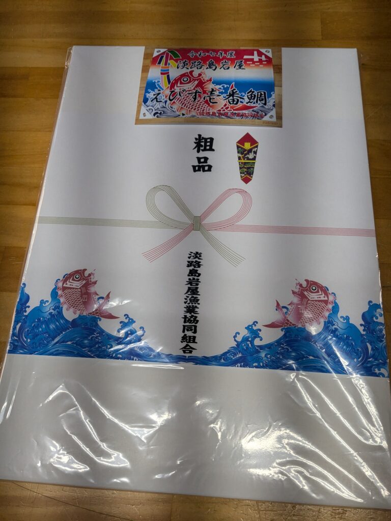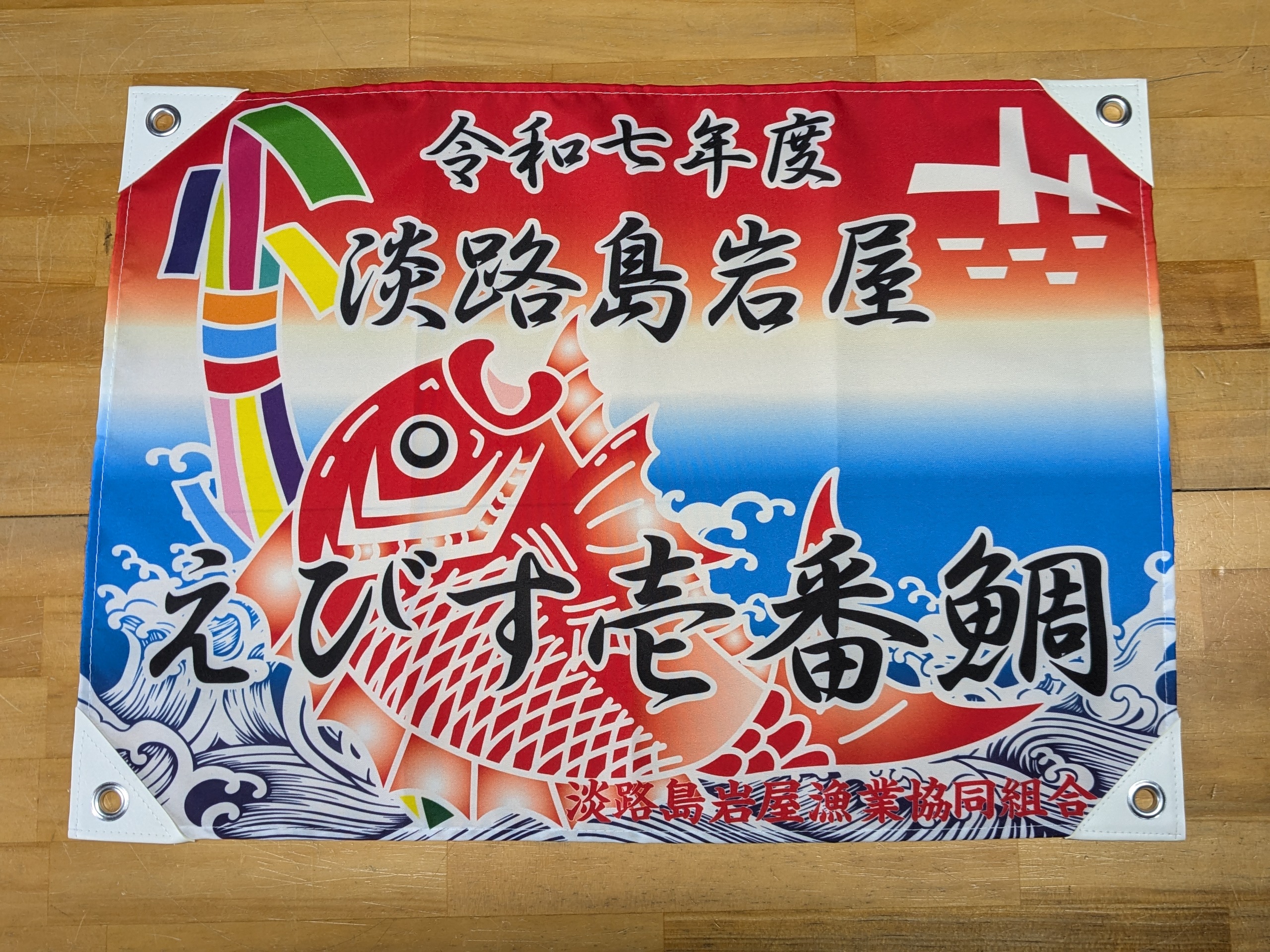 淡路 旗のご依頼いただきました。 未分類 2025.05.31 淡路島岩屋漁協様のえびす壱番鯛の大漁旗を作成しました。 今年の壱番鯛を落札した方に粗品としてお渡しする大漁旗です。 大変、喜んで頂きました。 毎度有難うございます。