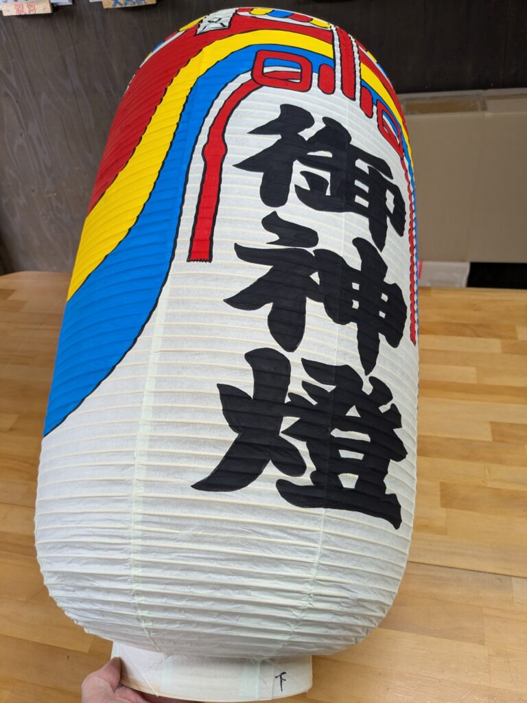 あわじ ちょうちんのご依頼いただきました。 未分類 2025.07.10 淡路市山田のお客様の玄関に飾る和紙提灯を作成しました。 正面に「御神燈」三色幕ぐるりに裏にお名前です。 全て手描きしております。 大変、喜んで頂きました。 毎度有難うございます。