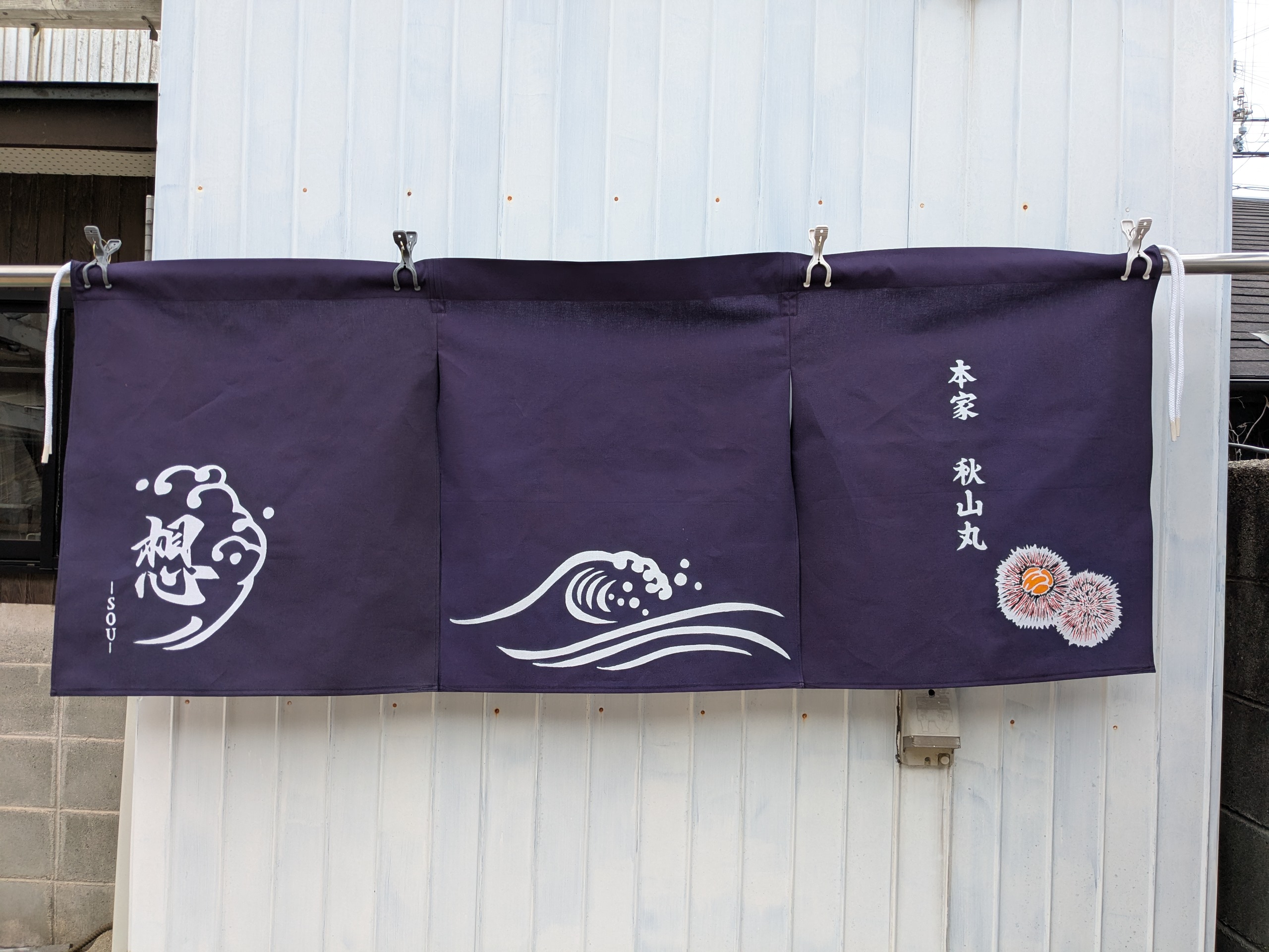 あわじ のれんのご依頼いただきました。 未分類 2025.07.19 洲本市本町4丁目の想-sou-(秋山丸)様の暖簾作成しました。 焼けにくい(退色しにくい)顔料引き染です。 紺地に白抜きで赤ウニを手描きしました。 旧、居酒屋ぴクルス様の、あとの店舗です。 本格的な魚料理が味わえます。 店主は由良の潜りの漁師さんなので、腕も間違いないです。 大変、喜んで頂きました。 毎度有難うございます。