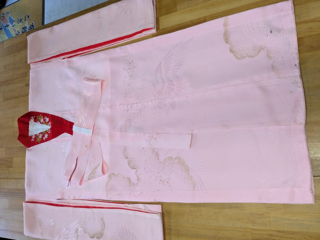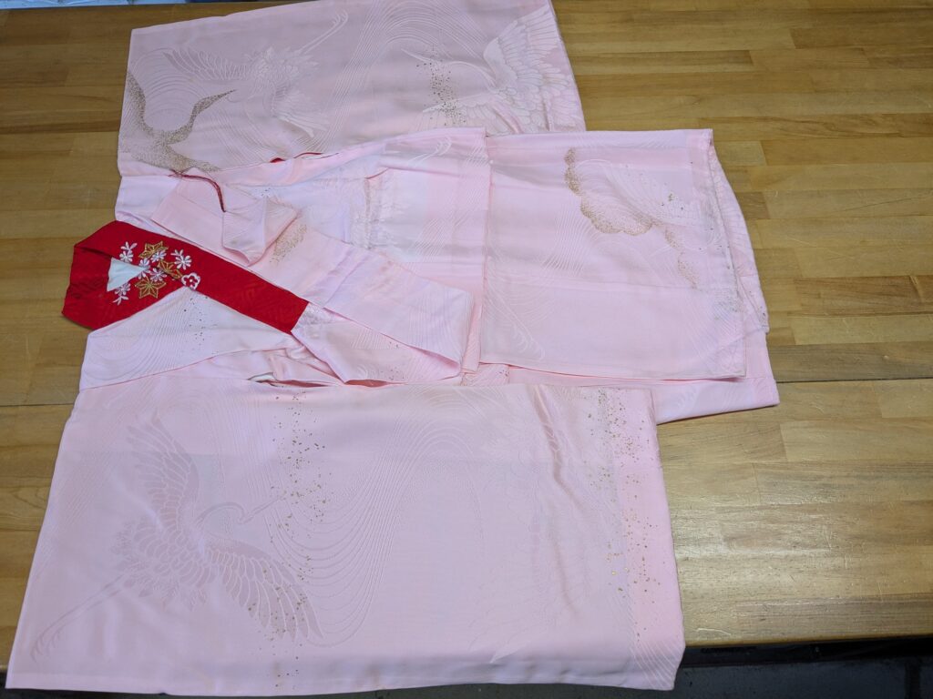 awaji 着物クリーニングのご依頼いただきました。 未分類 2025.08.09 洲本市の初めてのお客様のお宮参りのキモノのクリーニングしました。 古い物でみ上げもそのままでしたので、全てみ上げほどいて。 丸洗いし、乾燥。 ゆのし仕上げしました。 最後に和紙を挟んでたたみ、新品のたとう紙に入れお返ししました。 大変喜んで頂きました。 毎度有難うございます。