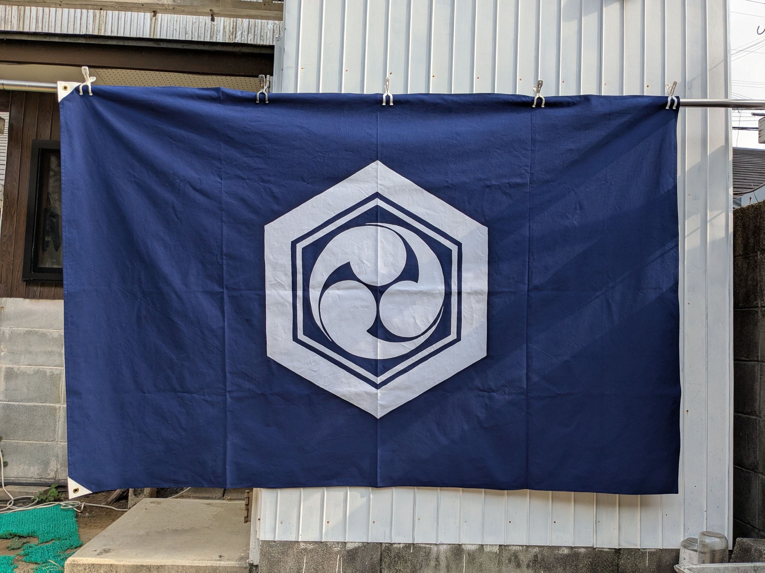 Awaji 旗のご依頼いただきました。 未分類 2025.08.23 南あわじ市阿万の亀岡八幡神社様の神紋旗を作成しました。 裾が破れていたので、今回は四方三巻補強仕立てです。 大変、喜んで頂きました。 毎度有難うございます。