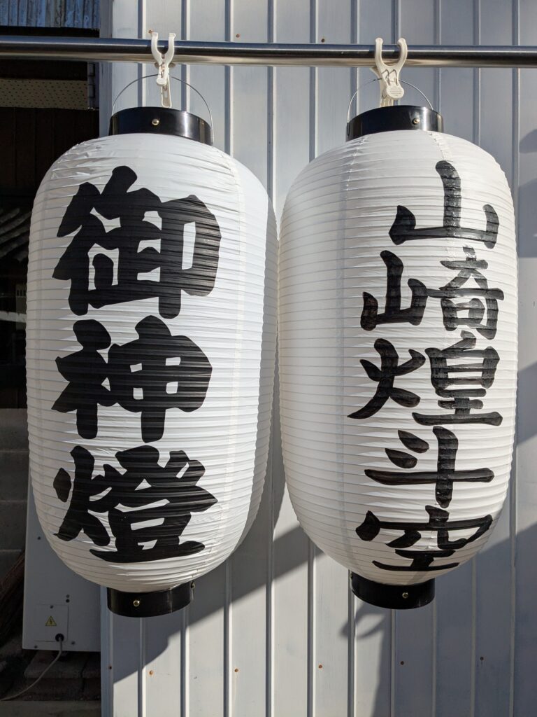 淡路 ちょうちんのご依頼いただきました。 未分類 2025.09.26 淡路市草香八幡神社様の御神燈提灯を作成しました。 雨に濡れても大丈夫なビニールちょうちんです。 前に御神燈、後ろに奉納者のお名前を手描きしております。 毎度有難うございます。