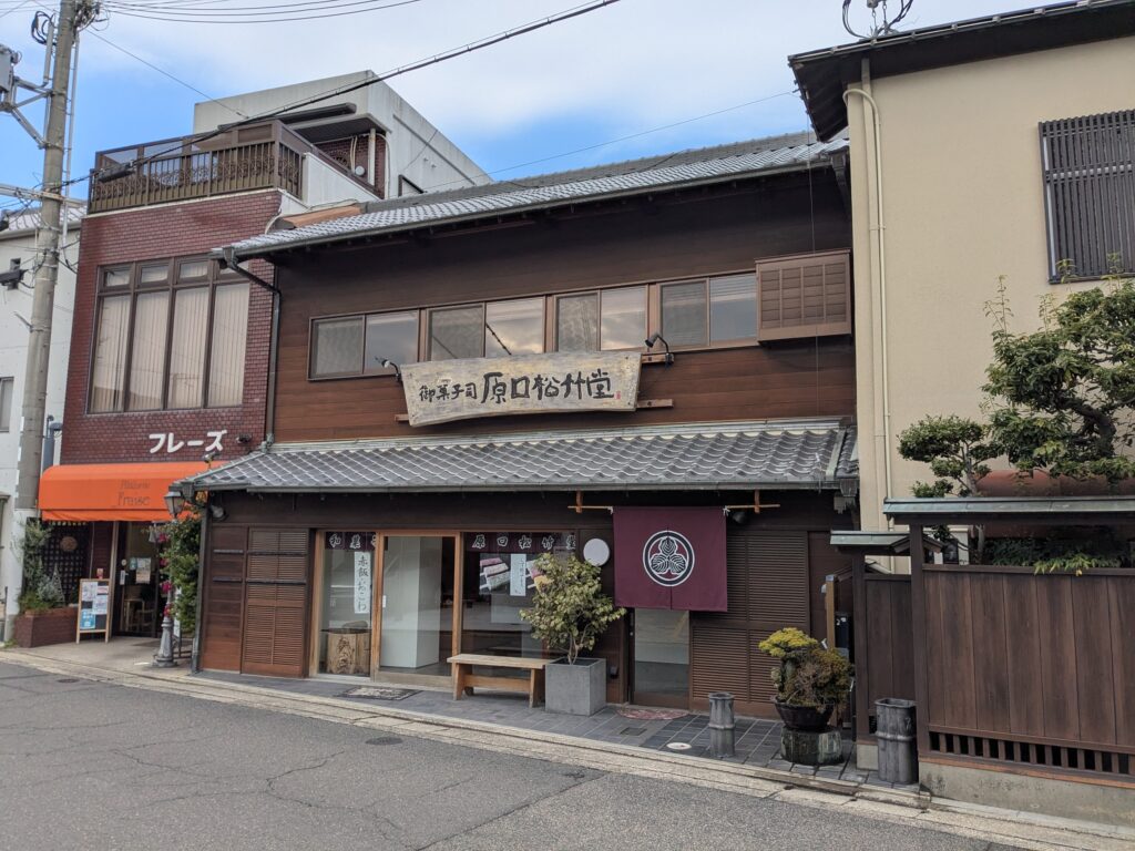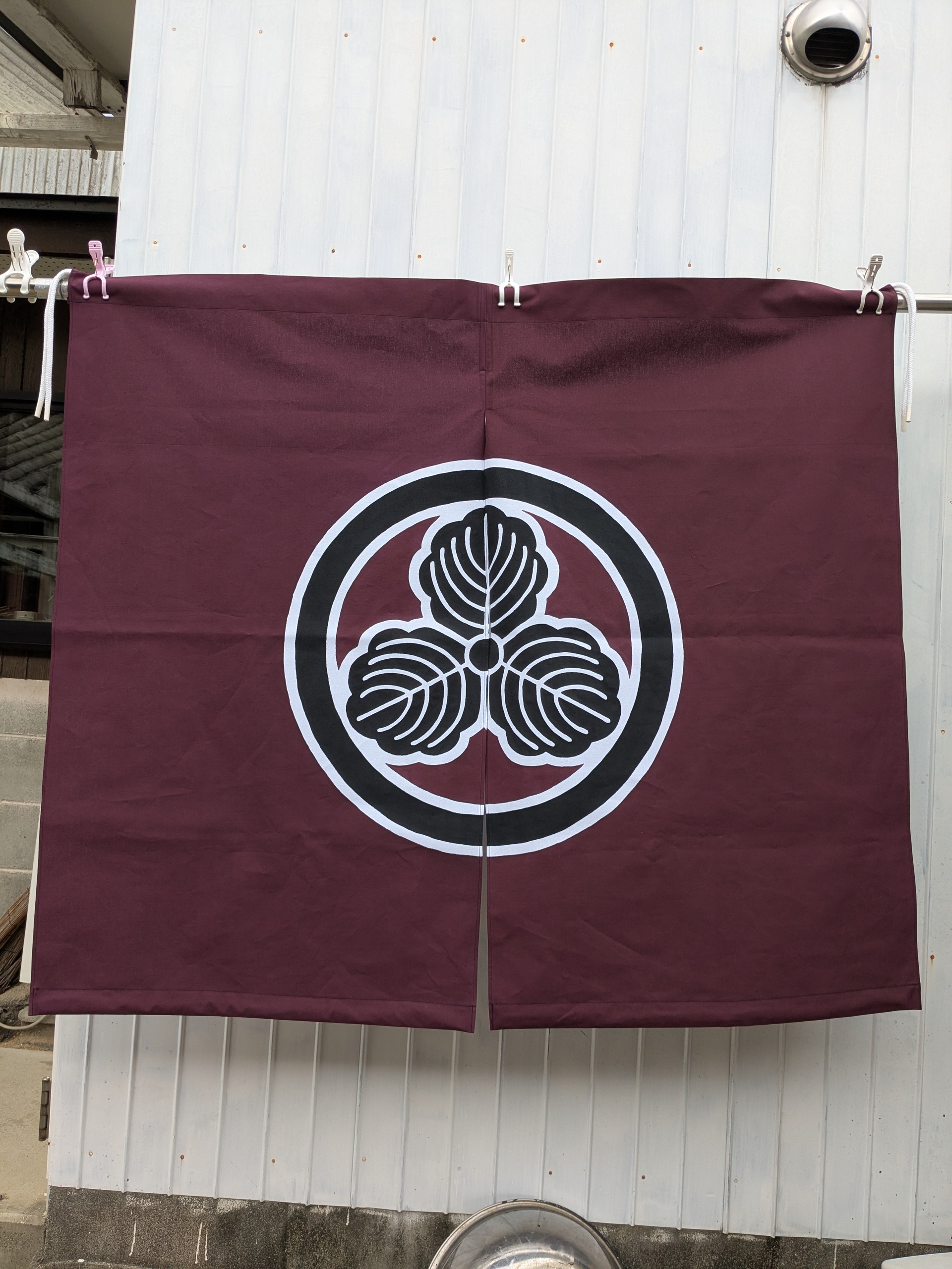 あわじ のれんのご依頼いただきました。 未分類 2025.12.16 洲本市の原口松竹堂様の暖簾を作成しました。 前は三つ割でしたが、今回は二つ割で臙脂地に黒で「丸に三つ柏」紋を染め抜きました。 日光に焼けにくい顔料刷毛染めです。 風に強い四方三巻補強仕立て+風に巻上がりにくいように裾に二重芯入り仕立てです。 お店の様子です。 大変喜んで頂きました。 毎度有難うございます。