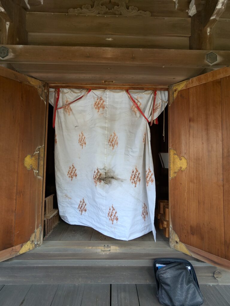 あわじ 戸帳のご依頼いただきました。 未分類 2026.01.31 南あわじ市阿万の亀岡八幡神社様の本殿用の戸帳を作成しました。 現場に採寸に行き、古い見本より、より良い寸法で作成しました。 こちらが古い見本です。 大変古く、かなり傷んでいました。 飾り紐で仕立てる様子です。 見違えた!と、大変、喜んで頂きました。 大きな、立派な神社です。 毎度有難うございます。