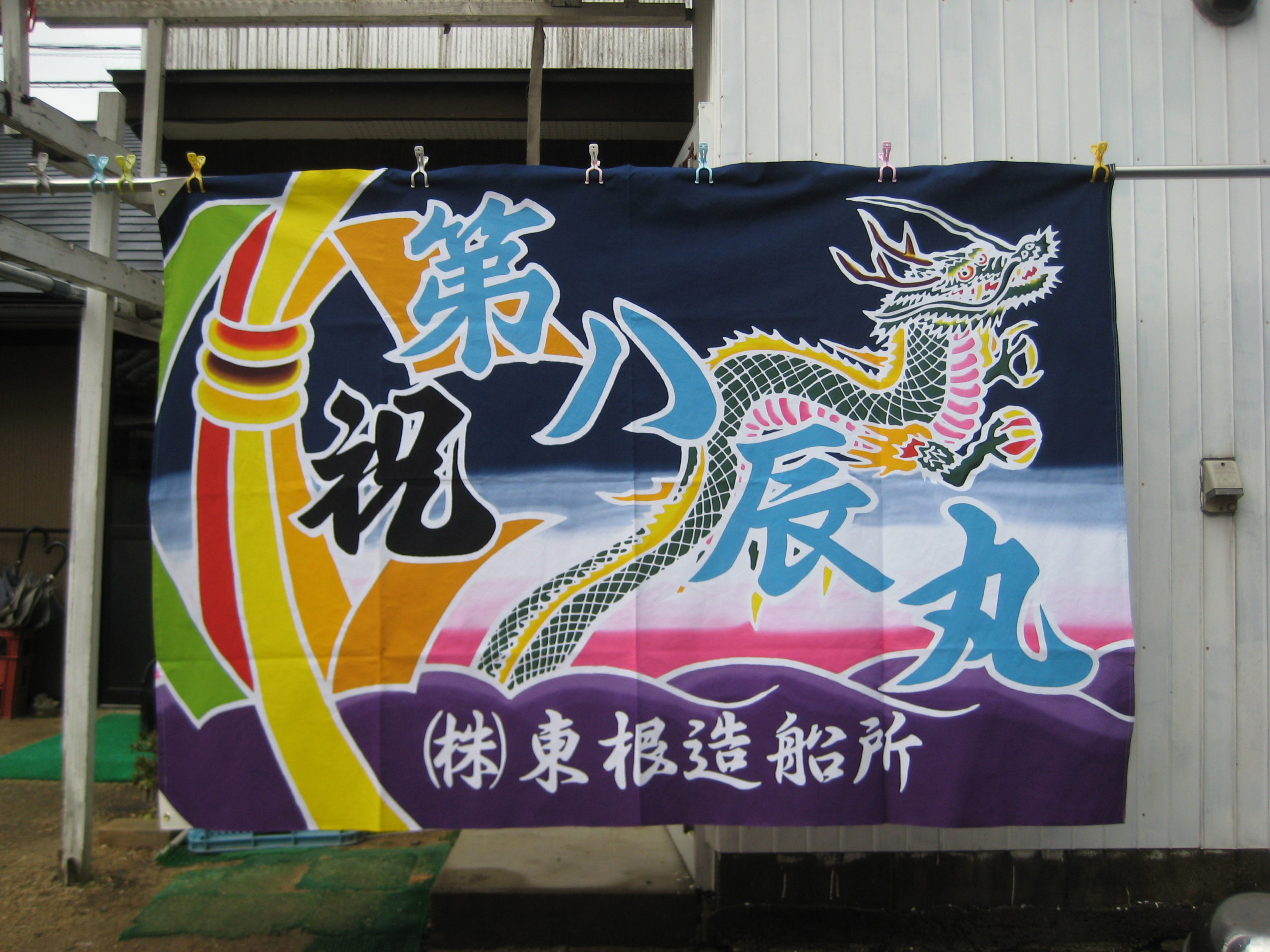 淡路島 大漁旗ご依頼いただきました。 未分類 2022.01.21 淡路市岩屋の㈱東根造船所様から第八辰丸様の大漁旗作成しました。 船名に合わせて龍の柄を入れました。 ㈱東根造船所様は祖父の代から大変お世話になっております。毎度有難うございます。