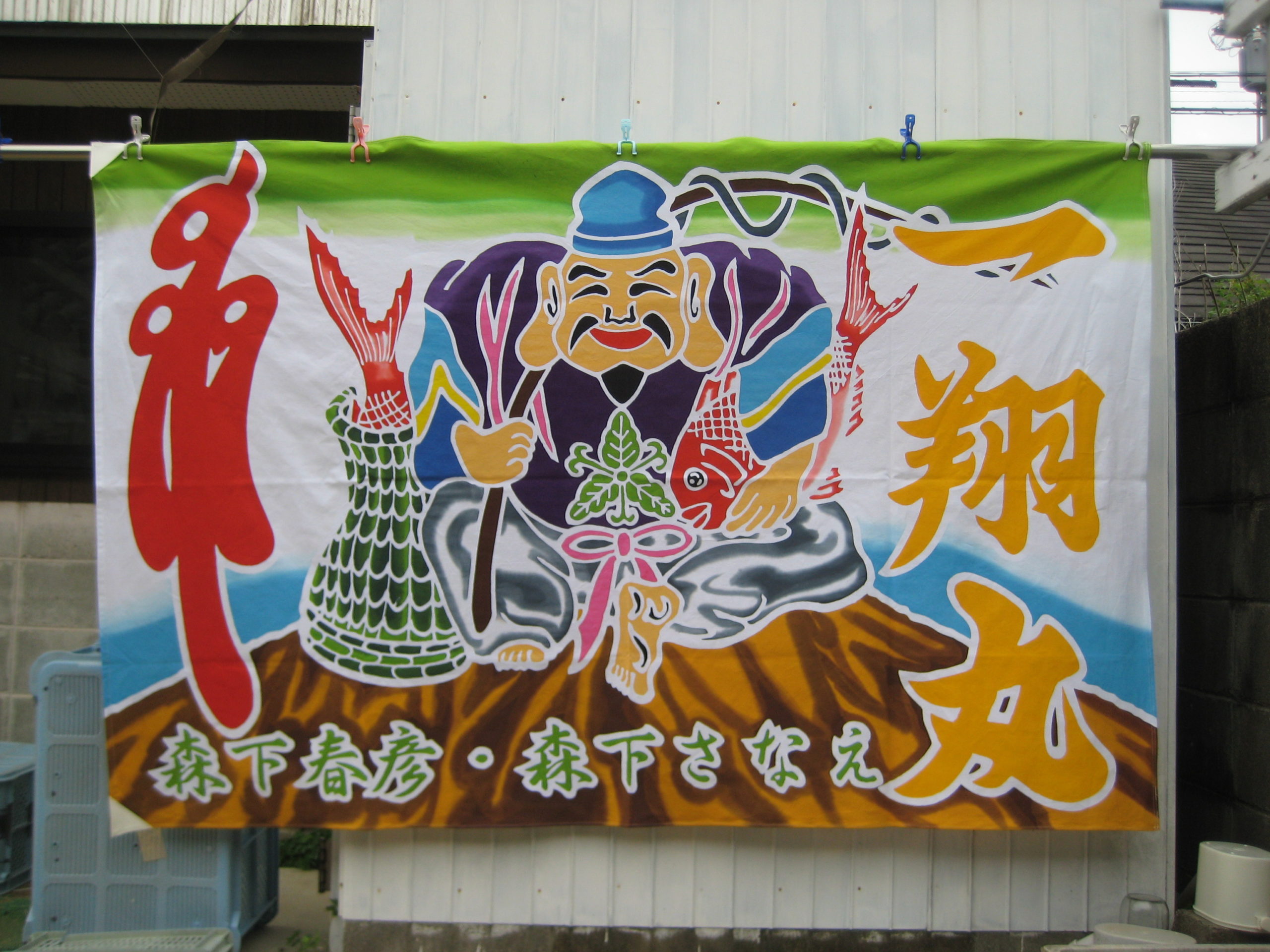 淡路島 大漁旗のご依頼いただきました。 未分類 2022.05.11 2022.05.10 洲本市由良の釣船一翔丸様の大漁旗作成しました。 丸熨斗に海に「二枚鯛のえびす様」です。弊店のオリジナルの色合いですので同業者様はパクらないように宜しくお願い致します。 森下様、毎度、有難うございます。 未分類