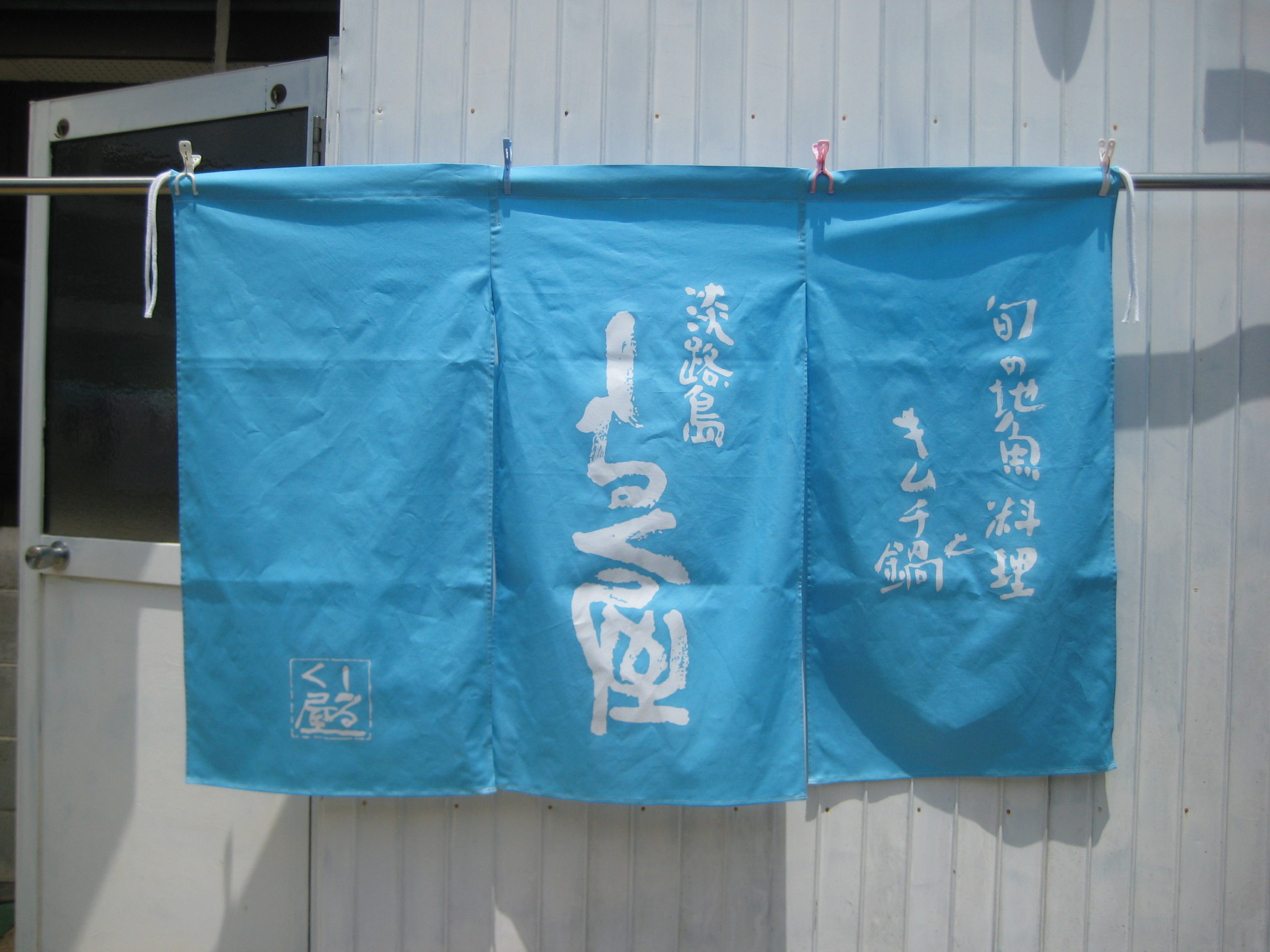 淡路 のれんのご依頼いただきました。 未分類 2022.06.03 洲本市の居酒屋しるく屋様ののれん作成しました。 何枚目になるでしょうか?4.5枚目? 夏用の淡い水色の、白抜き。某飲料メーカーの○○○の麦茶の、ようなのれんという事で。 前に染めたのれんは洗って仕上げしてお返し致します。 大変喜んで頂きました。有難うございました。