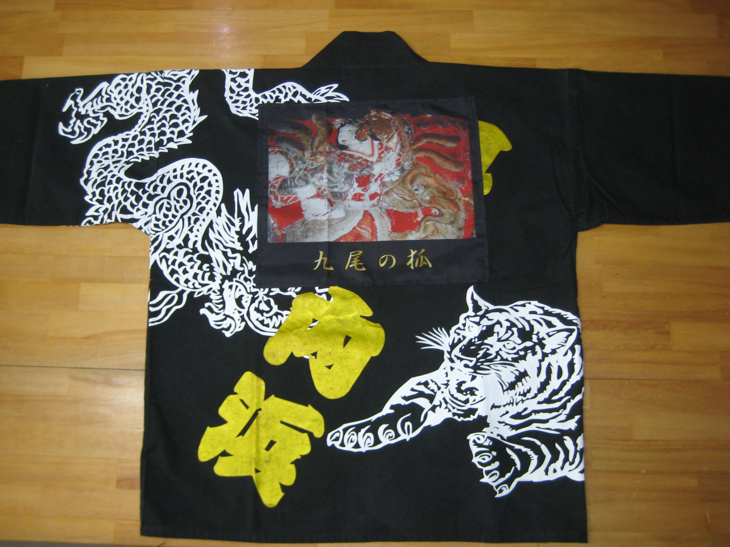 淡路 はっぴのご依頼いただきました。 未分類 2022.06.06 淡路市の斗ノ内浜祭礼団様のはっぴの作成しました。 過去に弊店で作りました、はっぴの上からだんじりの水引幕の九尾の狐の写真をインクジェットプリントした生地を その上から縫い付け縫製しました。 大変喜んで頂きました。 上はTシャツです。 毎度有難うございます。