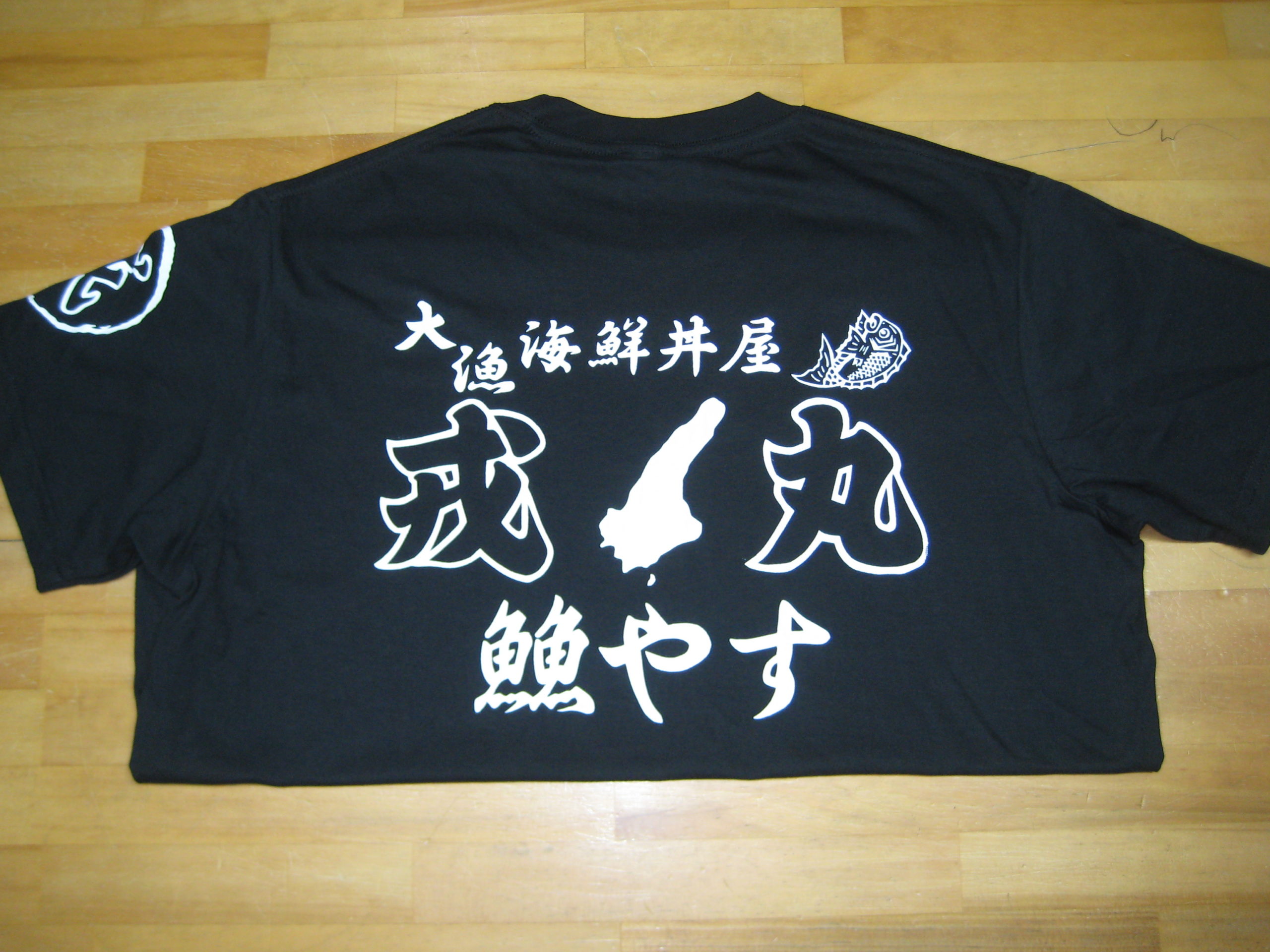 淡路 Tシャツプリントのご依頼いただきました。 未分類 2022.06.08 洲本市五色町鳥飼の魚魚やす様のTシャツプリントしました。 いつも紺のTシャツでしたが、今回は黒のTシャツです。 型は前から作成しておりますので、Tシャツ代(メーカー定価の40%引き)例えば@1000→@600です。+プリント代のみの 請求になります。左胸、左袖、背中の3ヶ所プリントです。 顔料型染プリントなので、Tシャツの首が伸びるまでしっかりプリントして仕上げおります。 のれん、日除けのれん、のぼり、Tシャツプリントと、毎度有難うございます。